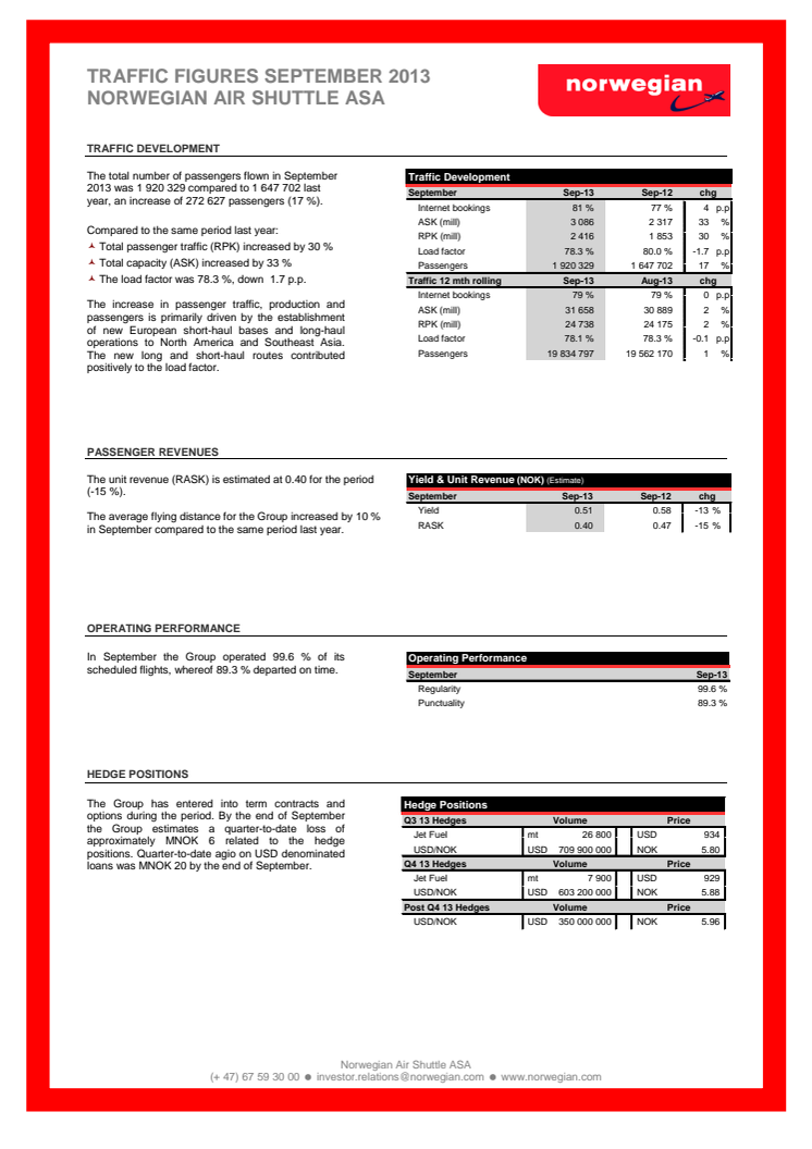 Traffic Figures September 2013