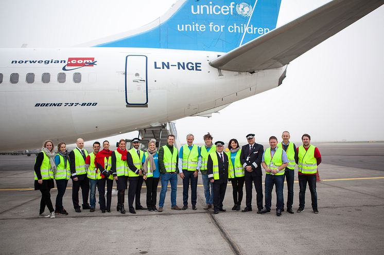 Group image of UNICEF and Norwegian's aid flight to Jordan