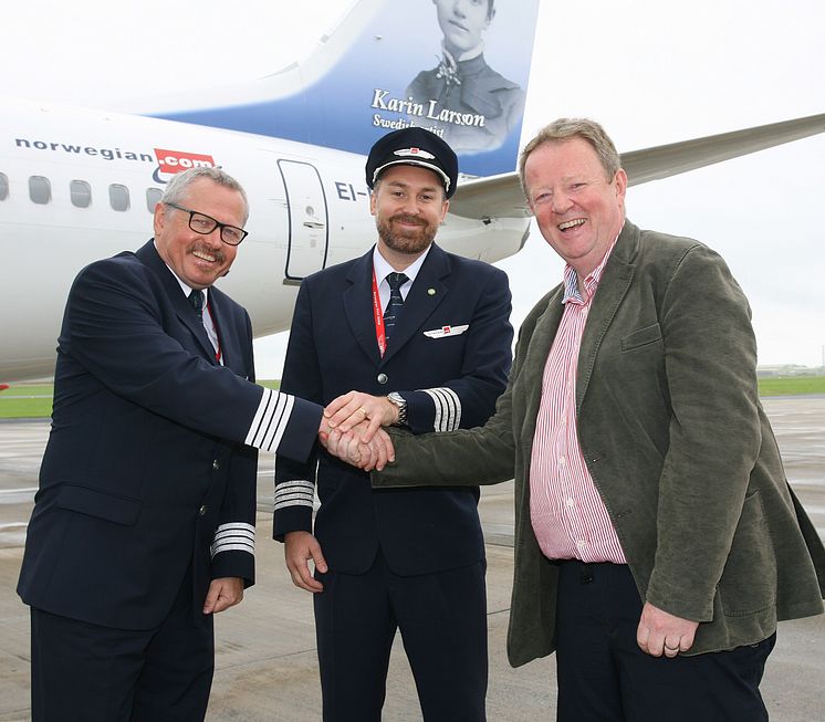 Lars Garde (Captain), Robert Bjorkholm (Co-Pilot) and Graham Keddie (MD Belfast International Airport)