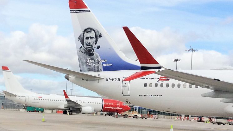 • Norwegian's Tom Crean tail fin 737 MAX at Dublin Airport