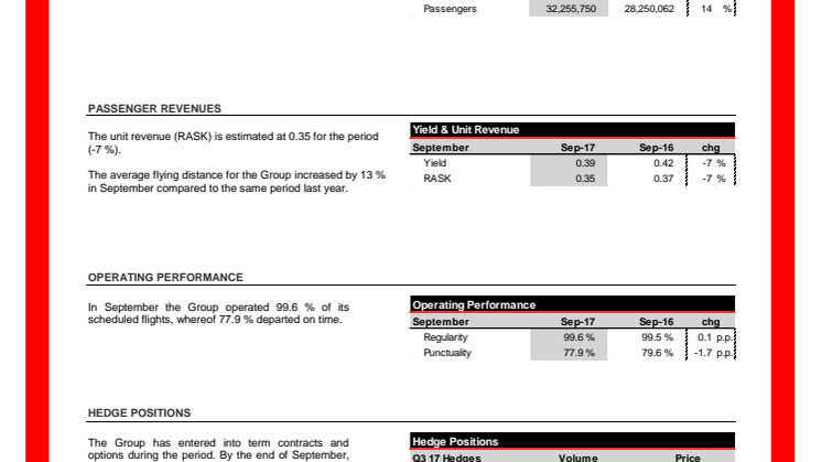 Norwegian operated 99.6 percent of the scheduled flights in September, whereof 77.9 percent departed on time.