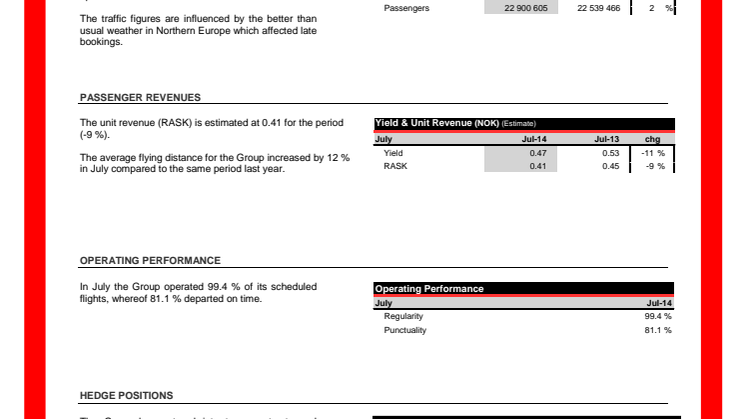 Norwegian operated 99.4 percent of its scheduled flights in July, whereof 81.1 percent departed on time.