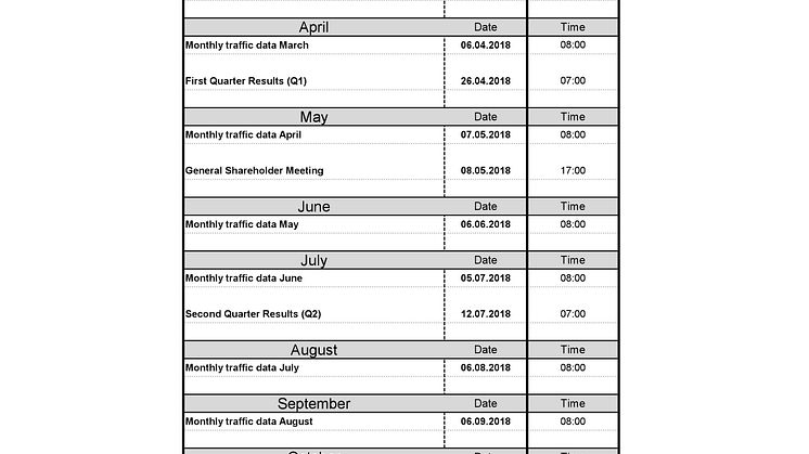 Norwegian will release the third quarter results Thursday 26 October 2017. The report will be made available at 7:00 AM (CET) at norwegian.com and newsweb.no.